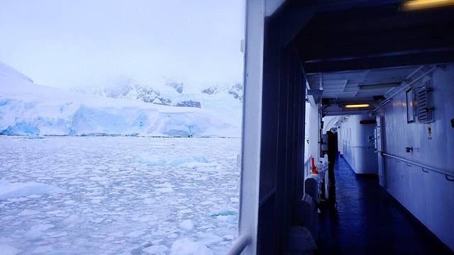 进入南极圈的第三天 冰锁拉美尔水道和天堂湾 Ocean Nova的1B级破冰能力和巴拿马船长承受了巨大的考验 3年前同期经过这个海域的时候晴空万里 哪里见得到这么多浮冰啊 船长亲自开船 在Nova通行的过程中 广播中听到探险队员提议为船长鼓掌 充分体现了船长在一个探险团队中的核心地位和关键作用… 破冰不忘娱乐哈 那天 我们在冰封的水道上上演了海天盛宴 还有勇敢的冰泳美人带给我们冰山之外的视觉冲击