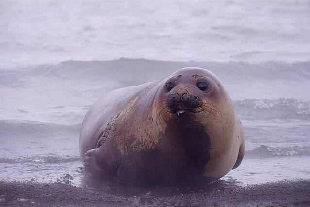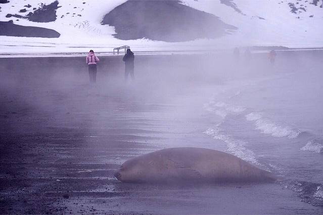 南象海豹的baby 独自躺卧在deception island 的海滩边 这是一个活火山口 沙滩和海水的温度令人难以想像这里会是天寒地冻的南极
