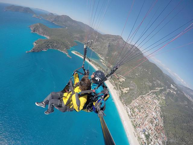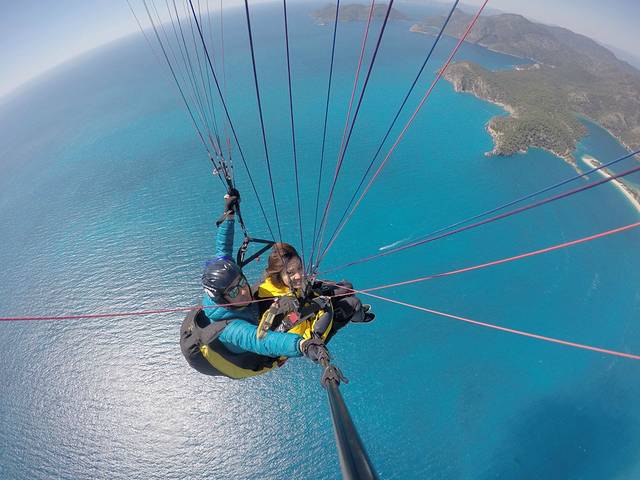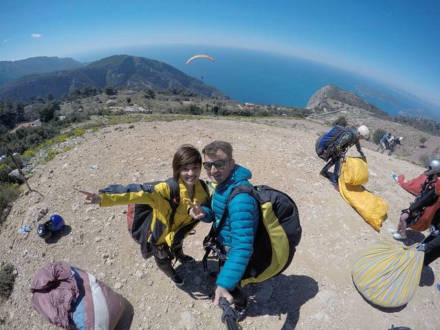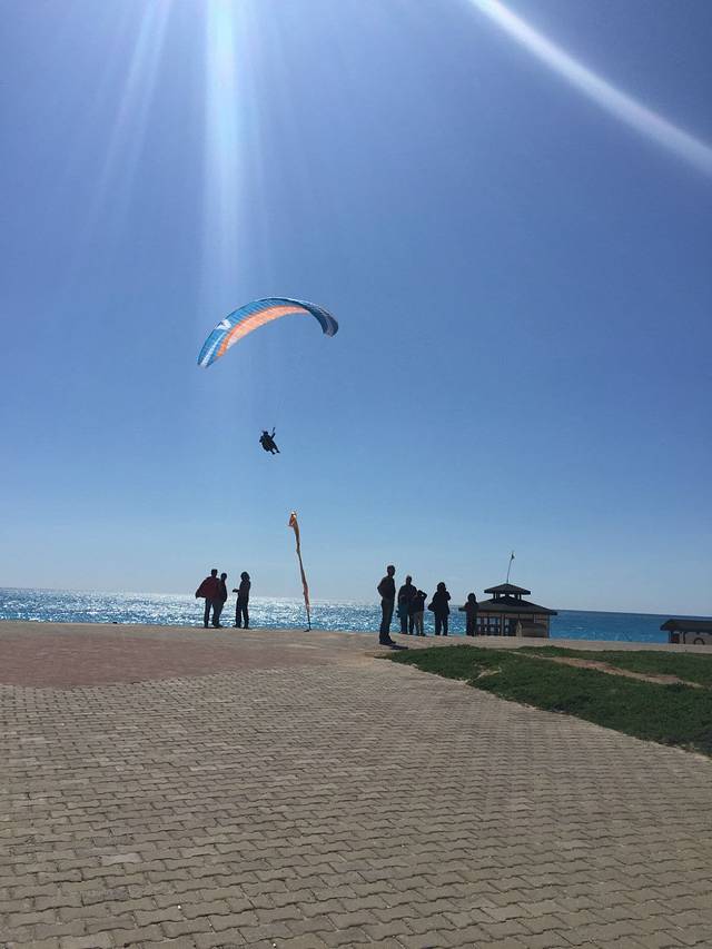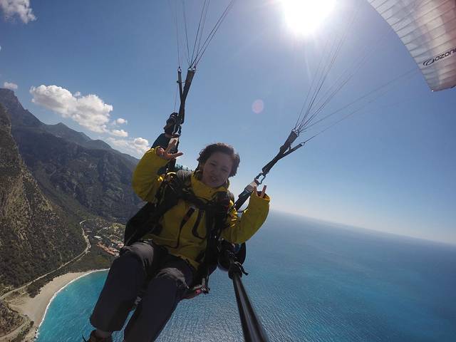 滑翔伞没什么好说的,就是昨天刚下大巴就被一个大叔拖走了,各种说说说,反正差不多价格你定了就是,会来酒店接,我们定的是早上十点多来接,滑翔伞140TL/人,照片80TL和摄像40TL你要的话直接给飞行员,那天的风向不是很好,我直接在山顶吹了一个多小时的海风,不知道是不是风的原因,大概就飞了十分钟,估计跟飞行员也有关系,我觉得飞的好平稳,我和飞行员说来转几圈 他貌似也听不太懂英文,没几下刺激的,同行的一个却说刺激到快吐了,另外千万要多穿衣服啊,我被冻了半死,所幸没感冒,但是脸却是裂开了