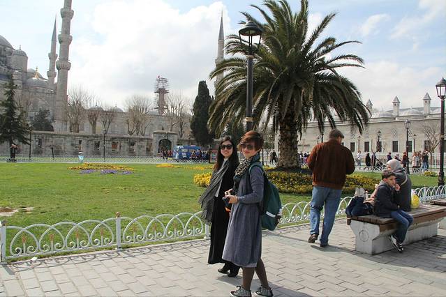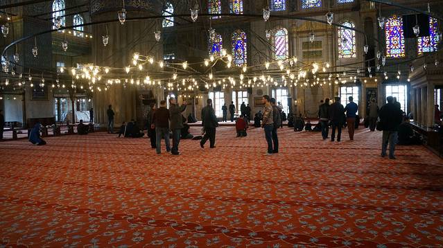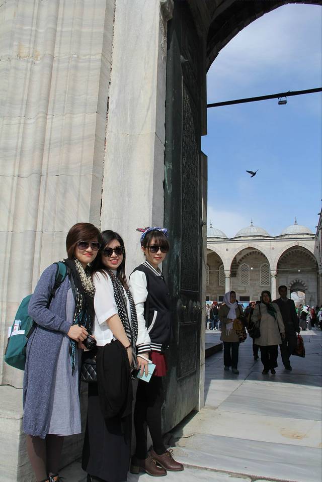 那帮英国来的小朋友没有什么时差的困扰 直接睡到下午一点多 洗澡 出门。第一站是清真寺 我觉得是伊斯坦布尔建筑群中最漂亮的 和泰国的大皇宫一样 要脱鞋进入 空气中弥漫着销魂的脚气让人窒息。