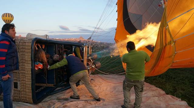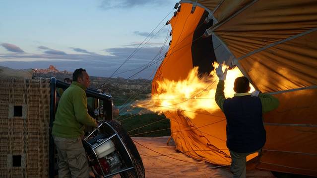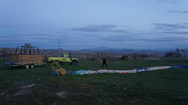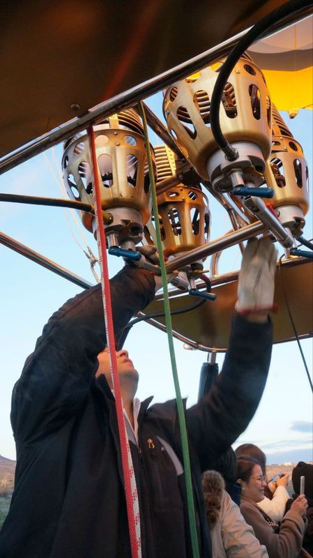 五点十的闹钟 五点四十在reception集合 小巴车接我们去集合点简单的吃了点早餐 然后赶往热气球乘坐点 那时候估计只有几度 所以要注意保暖。坐热气球 应该是我在土耳其整个行程中最期待也是最值得回味的一段体验了。
