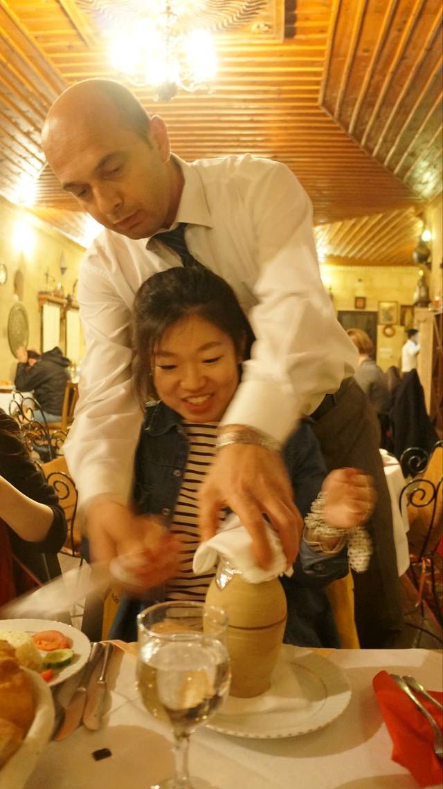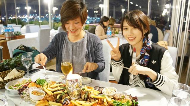 晚餐,算是一次高档消费,平均50TL一人,地点是旅店老板推荐,我们选择的,饭店会有接送服务,人不多,刚好绕着落地窗坐满,貌似除了我们没有亚洲脸的样子