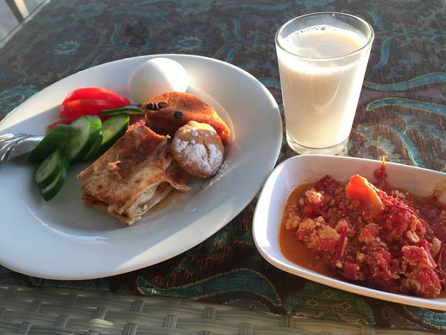 回到旅店差不多九点多,继续再吃点早饭,土国的番茄炒蛋有青椒,所以有点辣,味道还不错