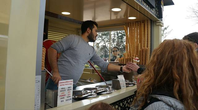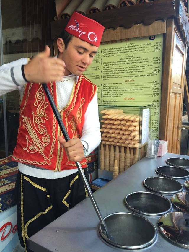 终于,土耳其冰淇淋,比较硬,口感很糯,和各种不让你吃到的小哥