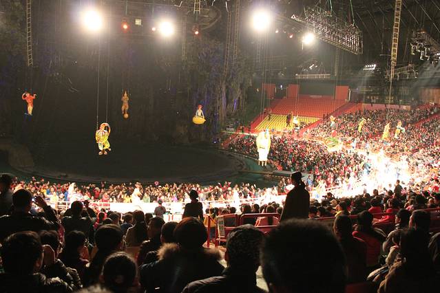 在家里时就放弃去阳朔,从广西去广州。是《爸爸去哪儿》做出的决定。女儿坚决服从。跟着女儿的脚步来到了广州。当晚就订了长隆大马戏的票,280元每人。人山人海,去晚了位置不理想。还有VIP票每人另加200元,没有舍得买。为什么说现在挣孩子的钱容易,票只是一方面,进来不准带任何吃的,一小瓶水除外。在这里多说两句,大马戏与野生动物园是可以买联票(便宜)的,但必需要在一天内玩完两个地方,我提醒一下体力好的家庭可以,但时间也很紧。所以建议分两天玩。