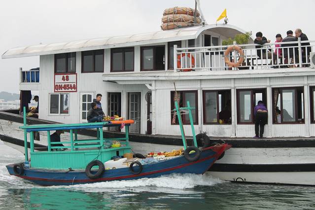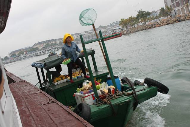 船刚驶离码头,做生意的小船就灵活迅速的靠了上来。各种水果,海鲜。他们的驾船、跳船技术就是海盗级别的。