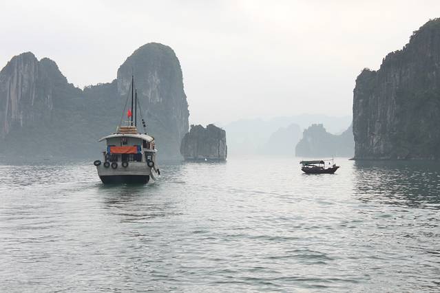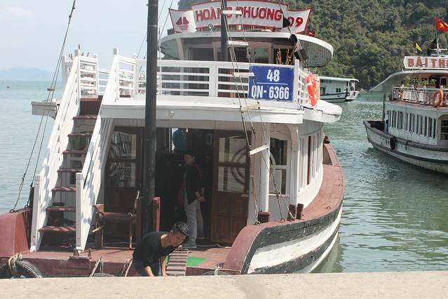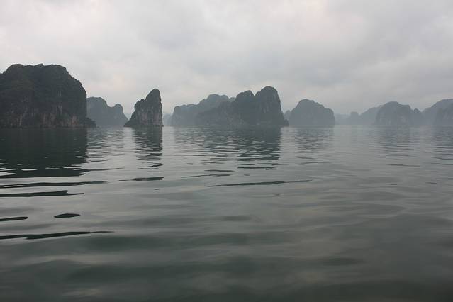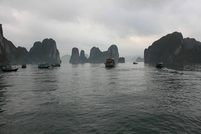 没去过桂林的我,对海上桂林更是向往。但初到下龙的住宿条件实在让人难以上床,大花被几年没有洗的样子,就是改革开放前的招待所,早饭米线一碗,不管饱,午晚饭还行可以吃饱。在越期间全是这个住宿情况再不赘述,咱钱没花到,三晚四天游每人980元。所以条件不好是我们交钱太少的问题,不是人家越南穷,下龙也有五星级六星级酒店。来下龙是来看景儿的,言归正传上图……