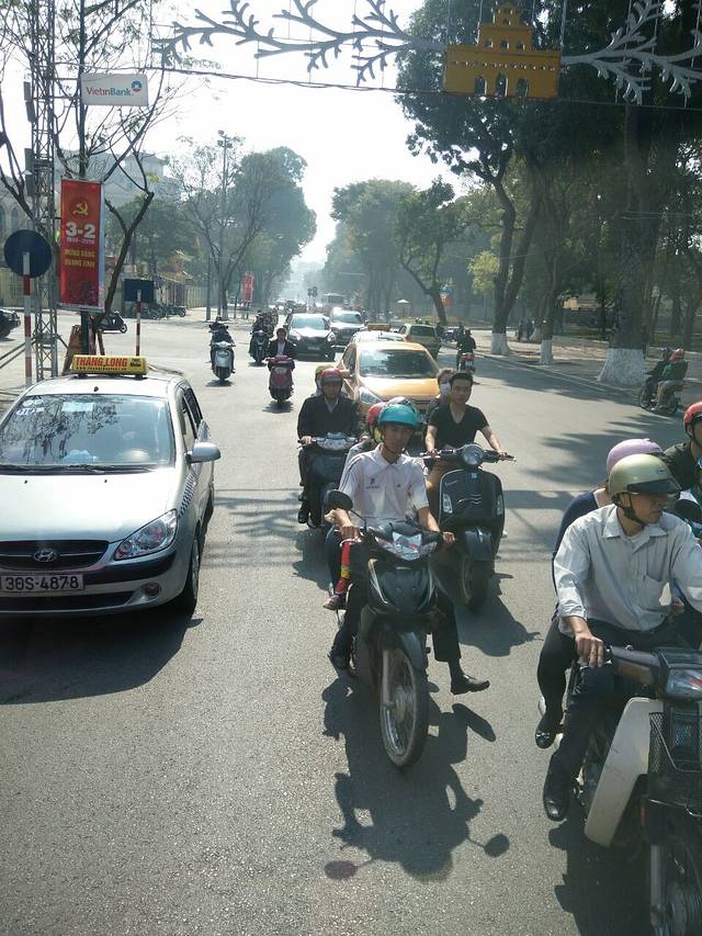 首都,摩托车很环保啊。导游说越南只限速不限载客量。
