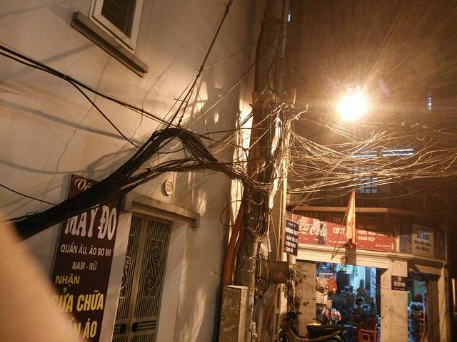 我还是跟老婆出来看看河内的夜景吧,这就是河内的电线。