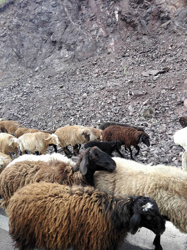 路上遇到的阿勒泰“据吕”,据说下雪后吃这种羊的滋味是最好的,号称“冰碴据吕”,是当地美食之首哦。听完刘玉柱的介绍我看着这群美食只有干流口水的份儿。