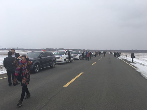 路上遭遇的风吹雪,风太大,为了安全期间,大家都在路边休息,顶着寒风抽口烟的感觉你造吗?怎一个销魂了得。你们以为是我的相机镜头不好吗?错了,是风中的雪雾,朵朵妹妹,你这张照片会列入你最想删掉的“黑”照片名录吗?