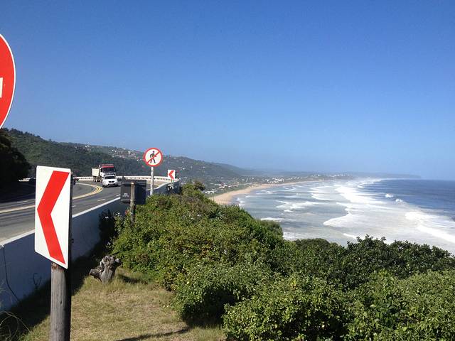 将油箱加满,从睡眼朦胧中出发啦,不过当丝丝凉意的海风吹进车窗,瞬间打个激灵,醒盹了,开始一天的花园大道之旅。从德班出发途中沿花园大道路线经过东伦敦、伊丽莎白港、奈斯纳,抵达开普敦,为什么叫花园大道呢,就是因为路两旁的景色,一面山来一面海。