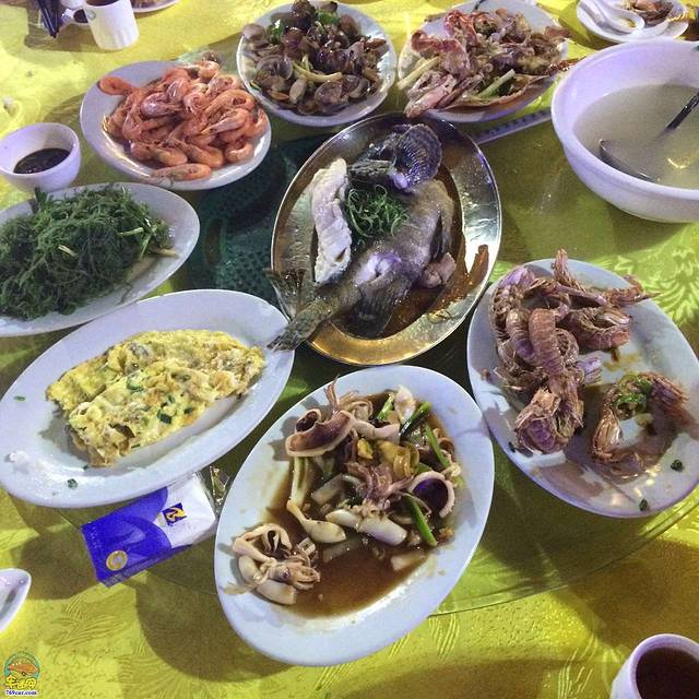 来到下川岛不能放过的就是这里的海鲜美食,我们一群吃货放下行李收拾收拾赶紧找吃的去了。这些叫不出名的螺啊虾本姑娘是第一次吃,哒哒哒....9个人吃饭点了几个菜花了400左右,平均下来也不贵,我们是AA制的。