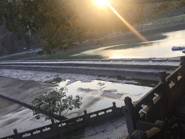 夕阳,你把今天最后一束光洒满大地。你穿过树叶,照亮了在它庇护下的一切有生命的物体。从庙殿外的一棵大树底下往下看,你会发现,就算河里的水再荒,路上人再少也不会觉得凄凉,恰好相反这是一幅出自天然的作品!我们只是天然的宣传者