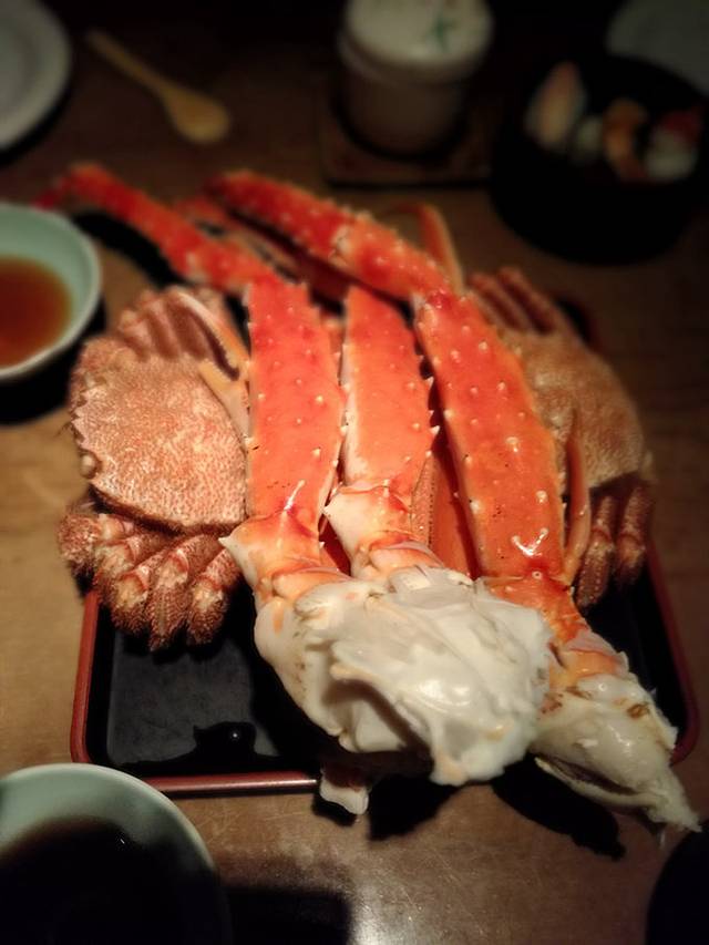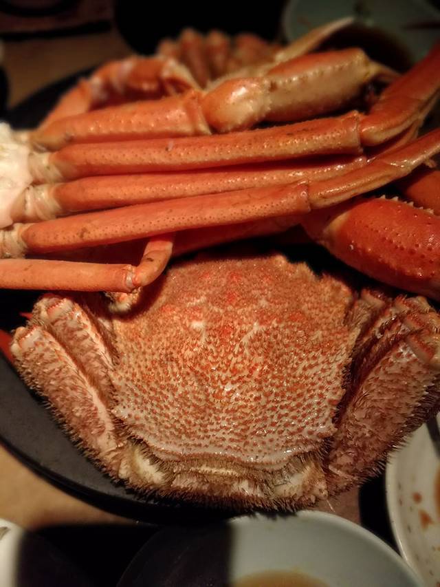 我们在晚上7点前赶到还能有座位,这里提供5000到6000的蟹自助,或者6000的定食蟹料理。怎么选择好呢。其实你胃口小的,可以选择6000日元一个人的蟹定食,东西会更美味,个体会更大。。而如果你胃口感觉不错,可以选择6000一个人的蟹自助,就是松叶蟹,帝王蟹,毛蟹第一盆上菜,,然后你可以吃完后任意点蟹,,