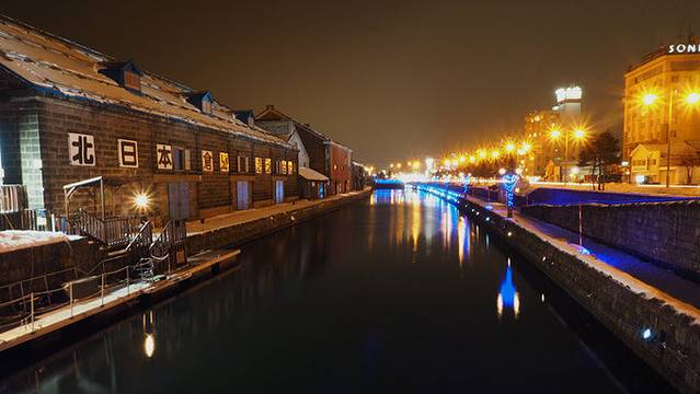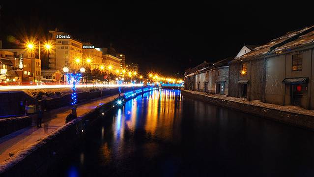 酒足饭饱的再去拍几张夜景的小樽运河,,,