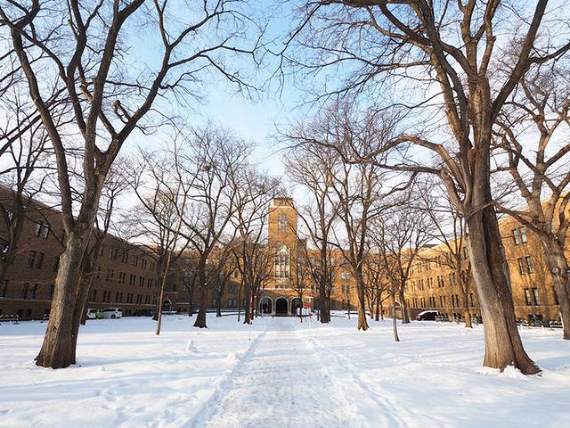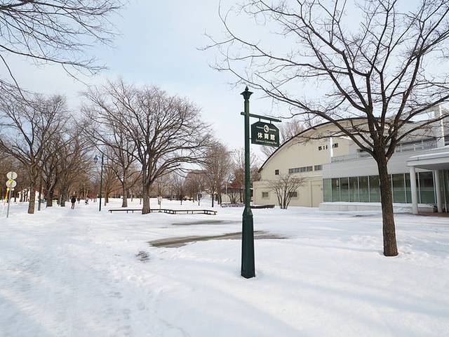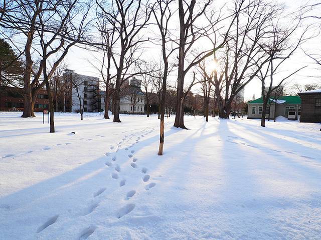 北海道大学离JR火车站步行也就10多分钟,非常便利,整个学校的雪积的很厚,有点特色,冬天感觉不错,走走拍拍一个小时左右时间,值得去走一下。