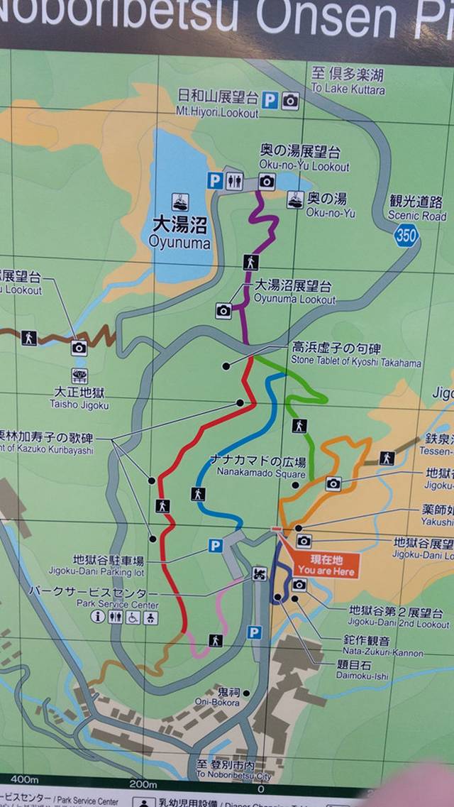 以上就是登别地狱谷的介绍,对的,你没看错,其实是可以在山上徒步到洞爷湖的,当然冬天山路下雪滑不方便,如果是夏天的话个人觉得是条很好的徒步路线。