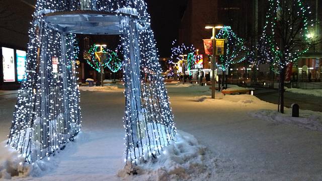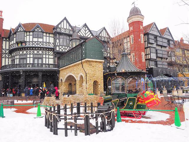 当夜幕降临时,各种彩灯点亮,音乐响起,如果是下雪天来此,更像是进入了童话世界。