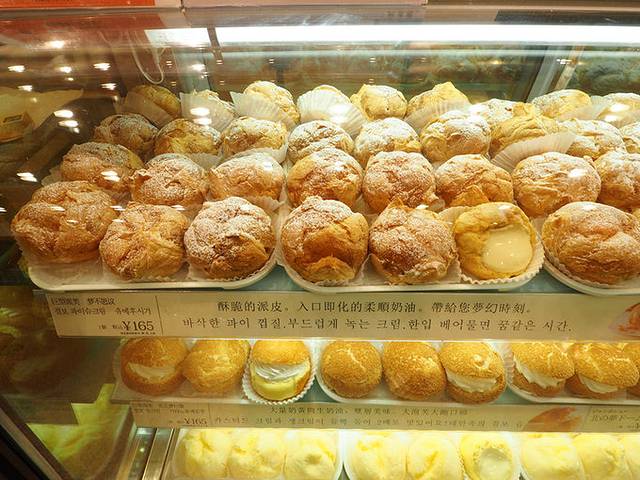 强烈推荐其中的镇店美食 泡芙 犹如千层酥一般滑爽可口至极。。保鲜期只有3个小时。。所以来这个店必须买大泡芙,别的妖精年轮蛋糕机场店也能买到