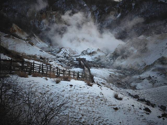走进地狱谷。。大约在一万年前形成,有直径大约450米的地方依然在喷白烟,而且寸草不生,又有强烈硫磺味,登别地狱谷因其就像在地狱之中,故此得名。