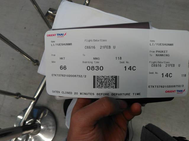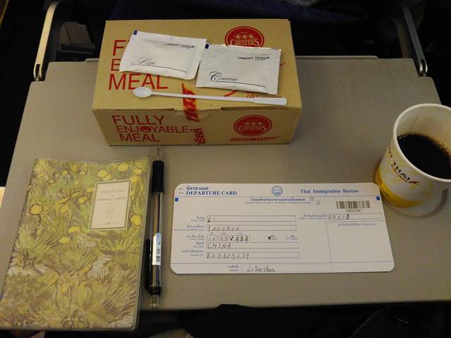 订机票:在去哪儿网上预订的,定好之后对方就会以邮件形式回复电子行程单(有可能被你的邮箱视为垃圾邮件,没收到的话在垃圾箱中翻查),这个单子各位要注意,要记得打印出来,特别是办理落地签的朋友,到了泰国之后当地海关入口有可能要求出示这张行程单(PS:结果证明并没有检查我的,但是以防万一还是打印出来比较好);而且在国外搭飞机的话,如果英文不好,可以直接出示这张单子给他看嘛,省事很多哈。此次搭乘的是泰国的东方航空飞机,对于第一次坐飞机的我来说,怎么感觉跟坐大巴一样一样的呢?另外给大家说一个买机票的窍门,这也是我在飞机上跟人搭讪了解到的,这架飞机原本是旅行社包机的,机上的乘客大多数都是旅行社团员,所以买票的时候可以跟旅行社咨询一下看看有没有剩余的机票,这样会便宜很多。