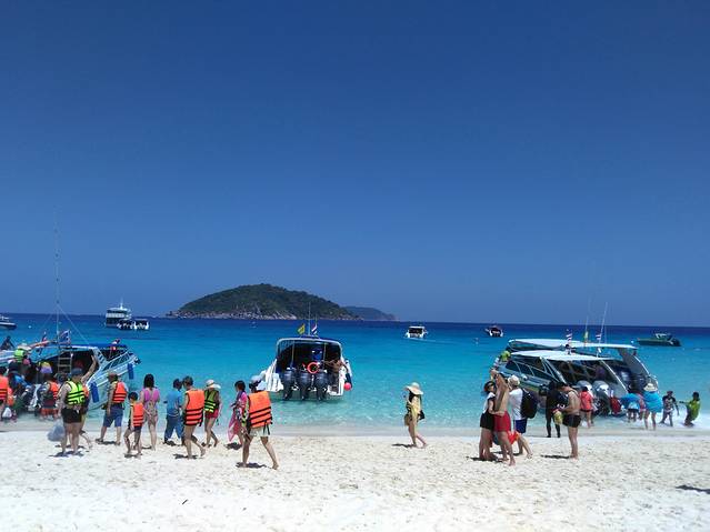 休息一晚,第二天7点30分,旅行社的minibus准时到酒店门口接我,满怀欣喜出发了。坐了1个多小时的汽车,9点多达到码头,人那叫一个多,其实这只是其中的一个旅行团而已,登岛之后才发现还有更多一拨人海在等着我,听导游讲解完毕之后,准备登船,谁知道船还没有走多远就反港了,说是由于发动机坏了,需要换一艘船,谁知道这一等就等到了12点,半天的行程都已经没了,好几名游客都已经退出了,剩下来的都是抱着好不容易来一次的心情,不能错过的心情等着,但是耐心也是有限的,最后老板娘出来给我们调配了一艘船,12点多才出发,到岛上都已经13点多了,匆匆吃了午饭,然后就接着坐船开始走马灯似的观看各座岛屿了。个人觉得PP岛目前游玩的人已经很多了,不过这里的景色还是很美的,所以还没来过的同学们要赶紧了。