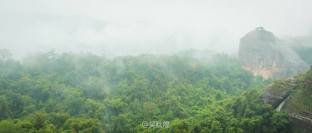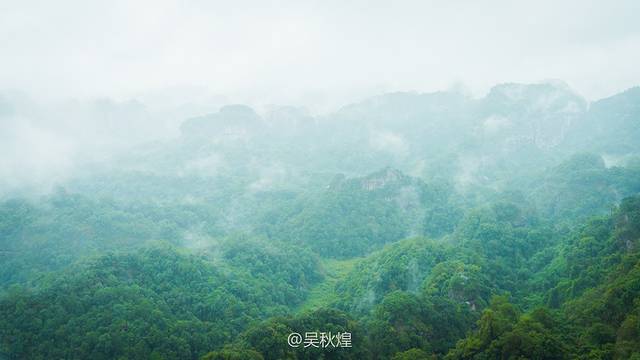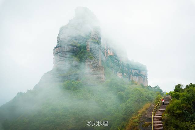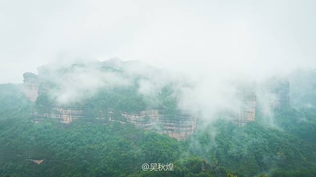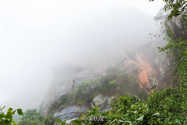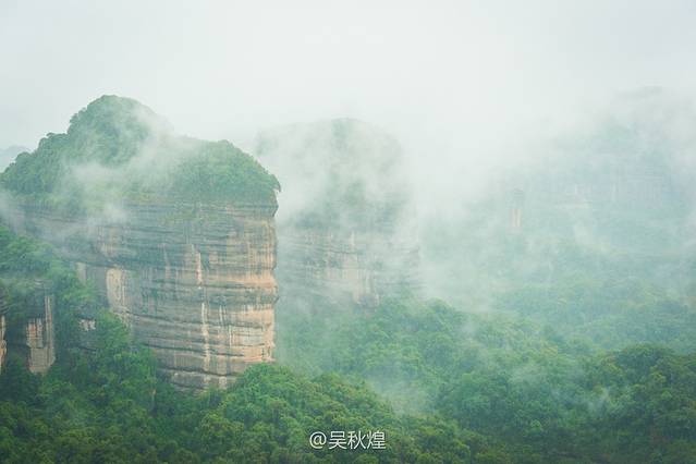 风雨中走这一程,看不一样的景色,看云雾迷漫的丹霞山,一抹丛林中隐壑着红红的丹霞山。