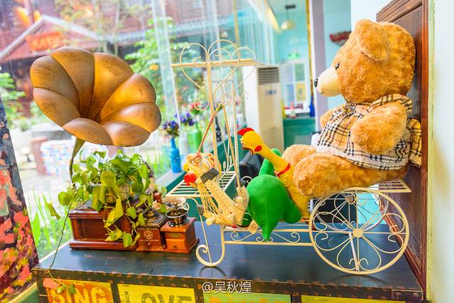 位于客栈的一楼就是咖啡小镇,打扮得文艺范一样,价格也不是很贵,里面很多设计都是同学们或是来这里写生留下的作品,跟这里老板和老板娘聊起了天,正如他们所说的,保留最原始的东西才是最美的。