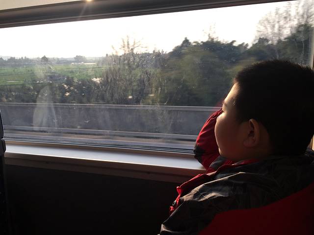 落日余晖中踏上峨眉镇的火车