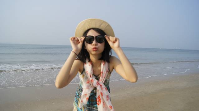 我们是在21号那天在淘宝上买的去槟郎谷的一日游,一百多块钱,包吃来回车票,还有门票,但是要集合出发的地方离我们客栈比较遥远,公车一个钟,打的半个钟,那天迟迟等不到公车来,就只能打的了(体现出了选房地理位置的重要性啊),打的的时候遇到一个比较有个性司机大哥,我们说司机大哥听你口音应该不是本地人,司机大哥说对我是河南的,来海南追寻明媚的阳光,碧海和蓝天,新鲜的空气,还有那份休闲自在的自由。哈哈哈哈哈哈提前来到了目的地,还有点时间,那就去海边拍拍照吧!