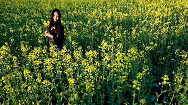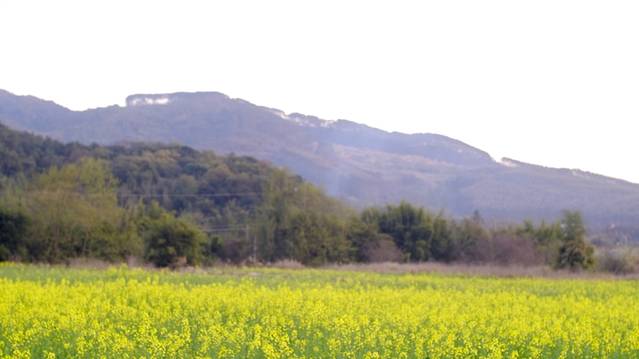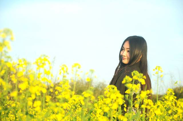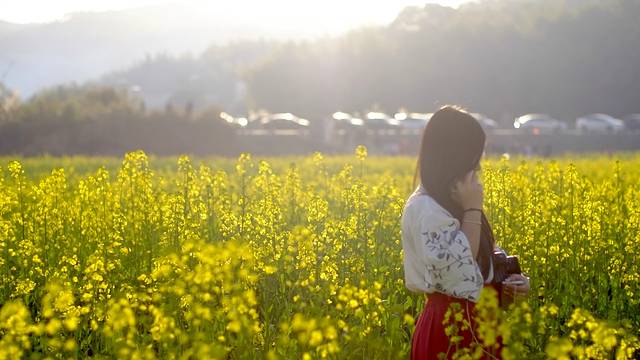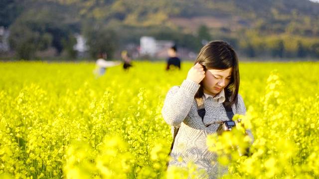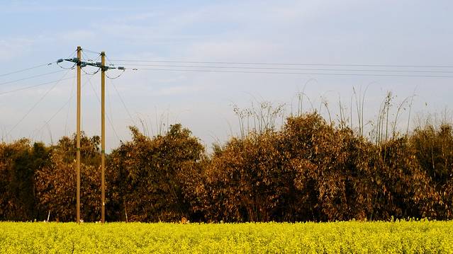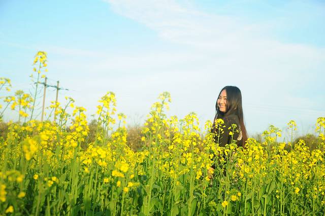 这片油菜花田说大也不算真的很大,只是一整片连在一起,只有在边上竖着两个电线杆,就像是两位坚守岗位的卫士,保护着这一片好春光。