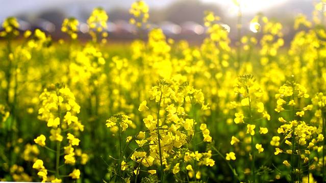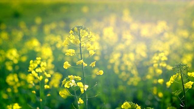 油菜花田已经迫不及待地换起了新衣,在田野里肆意盛开,犹如一片金色的海洋,伴随着阵阵春风掀起一层层的波浪,煞是好看。