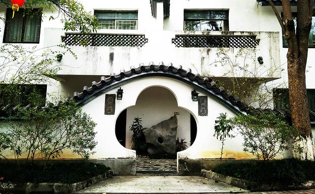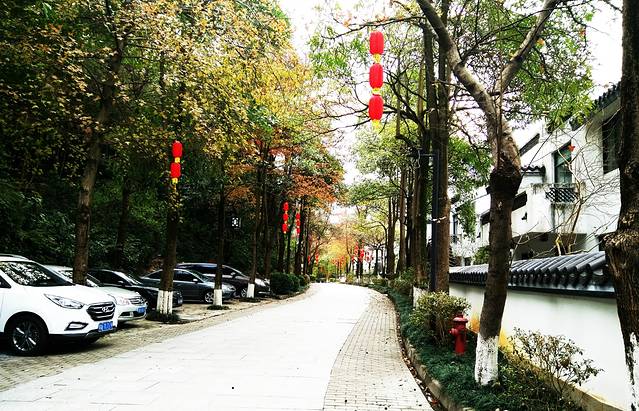 下车之后,便看到了一大片精致的园林建筑,长长的青石板路,两旁高高的不知道是梧桐树还是枫树,有图有真相,好看吧~