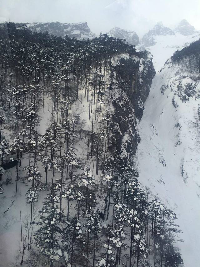 由于雪下得太大太大,快爬到4680的时,栈道封闭啊,工作人员在清扫积雪。眼看着就要到了,就是上不去,有点遗憾!留点遗憾也好~