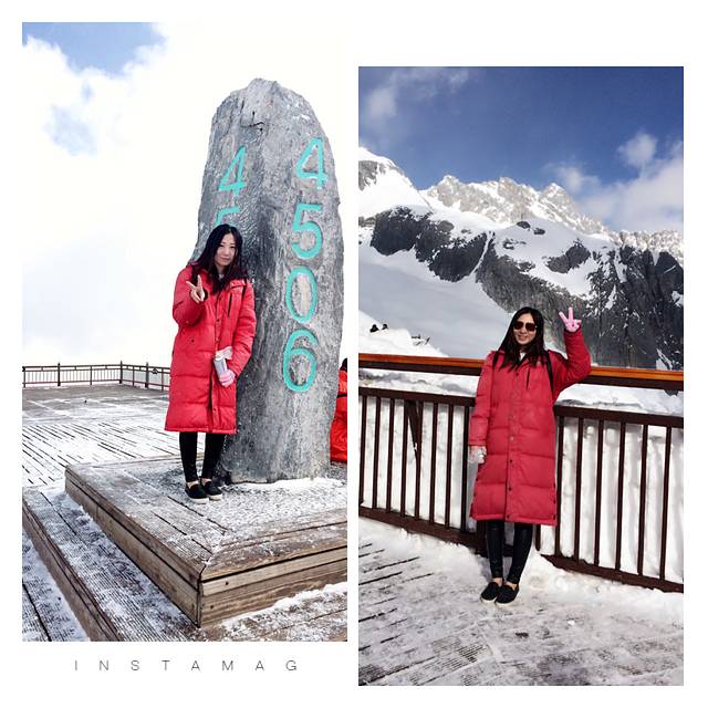 大索道出来的就是4506,我们抵达的时候差不多十点多了,后面那美景超级赞的,上山早才看得到哟!一到就开始拍照拍照,看见我穿的鞋子没,强悍啊,强悍啊,在雪地里行走啊~脚那个冻啊··请大家一定要穿保暖的鞋子!!不要学我!!我身体好~~
