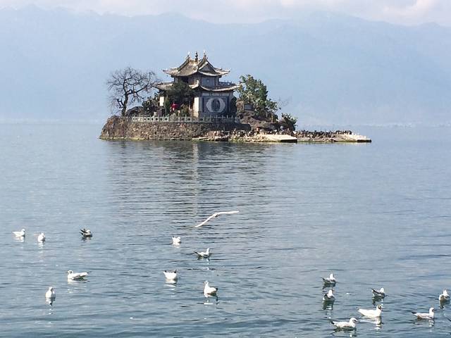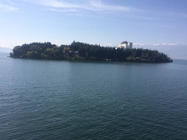 这是在客栈看到的南诏风情岛,嗯,它就是一个岛~网上订票,直接到渡轮码头乘坐摆渡船上岛,航程约5分钟!