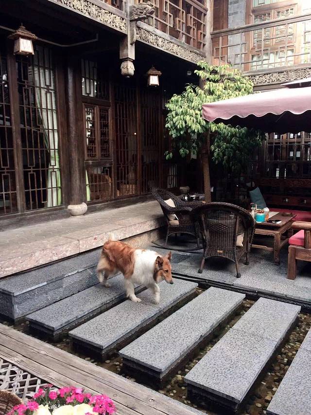 客栈的狗多多~拿香肠给它吃,叫它做什么就做什么,温顺的狗儿