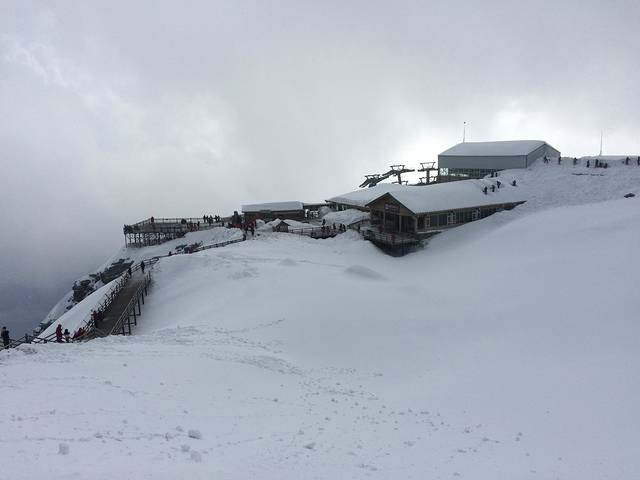 天气特别好,所以我们坐上了大索道,在大索道上看雪花飘啊飘啊,太美了,我是第一次看到雪的孩子啊,兴奋啊!地导说:上了大索道要开始吸氧,于是开始吸啊吸氧啊!一定不能等缺氧的才拼命吸,那是没有用哒!吸氧也挺好玩的~