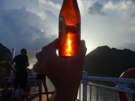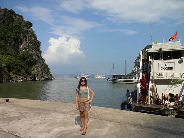 这一天就是早上一大早起来坐车,然后去下龙湾坐船,在船上暂时也没有什么活动,就晒晒太阳和大家聊聊天什么的,看看景色,去了天宫洞看了看,挺悠闲的,下午就一堆人一起跳海、游泳。然后午餐和晚餐还是不错的,晚上有一桶免费的啤酒,然后把船上的工作人员喝high了,船上的房间和酒店的房间差不多,就是没有热水,然后空调只有7点之后才能开。