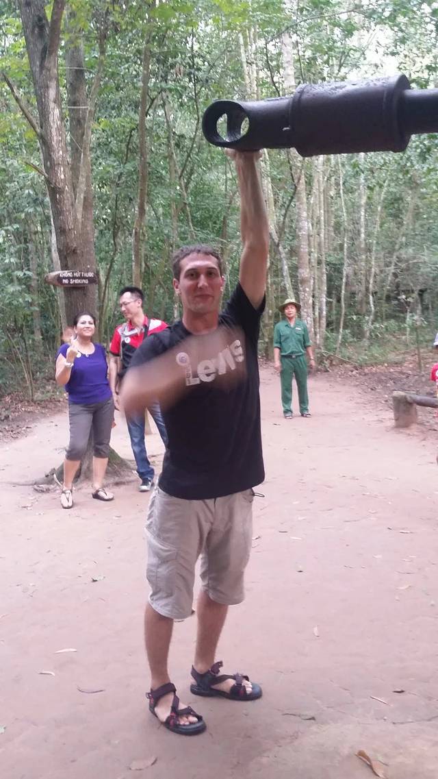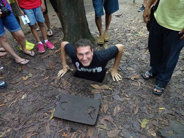 然后我们在一家旅行中介定了两个旅程,其中一个就是tunnel trip,去一个下午,车接车送,主要就是讲美国和越南打仗的时候越南人是怎样利用隧道的,导游是越南战争的战士,很爱开我们的玩笑,然后说英文,如果不是很感兴趣的话就不用去了。这个trip还是很便宜的。