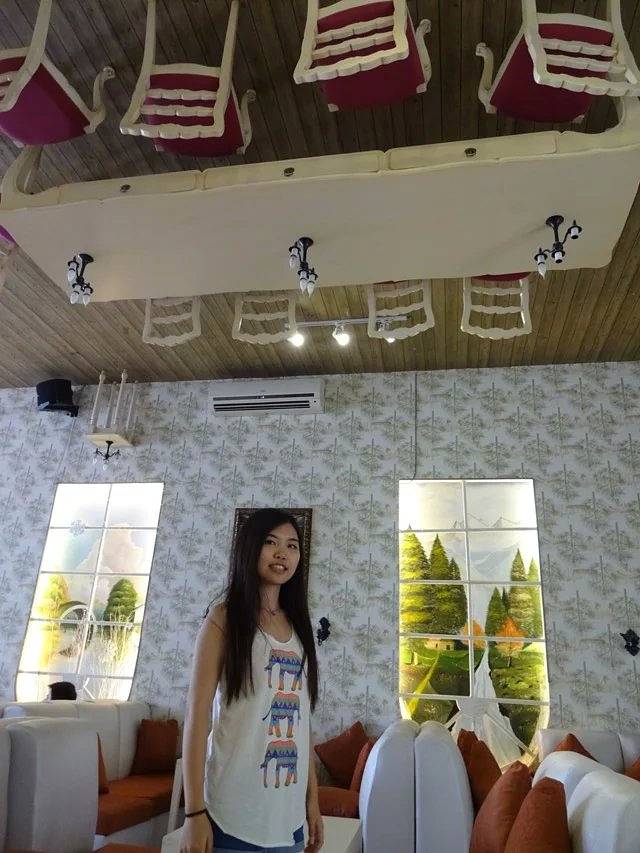 Up Cafe:挺有意思的一家咖啡馆,之所以叫UP Cafe呢是因为房顶上有一些倒着放的钢琴、桌椅,然后墙上画的窗户的方向也是倒的。
