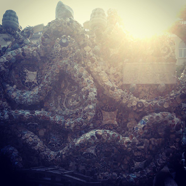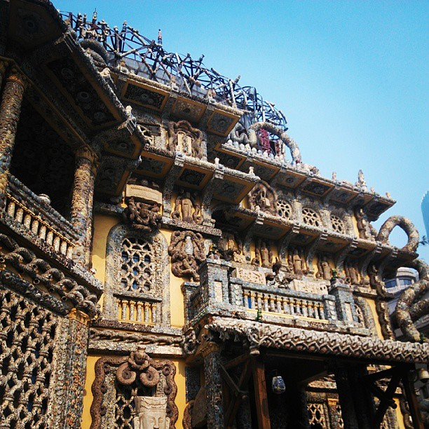 瓷房子的外观和周围的建筑对比起来实在是太别具一格了,到时很吸引眼球,因为门口全是接游客的出租车蓬蓬车,所以拍不到全景,翻拍一张宣传画的图案看看