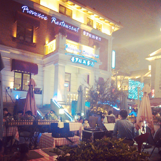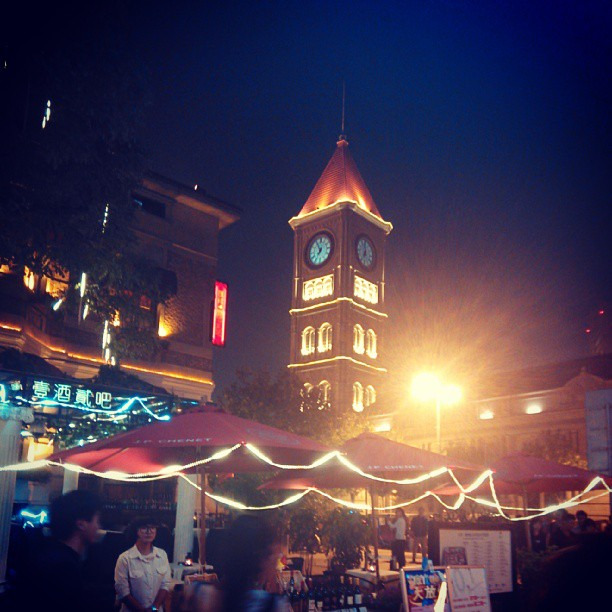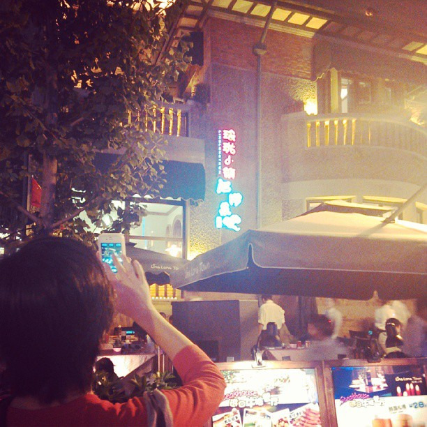 这条街上全都是历史建筑,现在被装修成了餐馆,酒吧,晚上人很多,很热闹,每家店都把作为摆在露天的院子里,伴着不同风格的音乐,散发着各类美食的味道,步行过道两边还有很多冰激凌烤串等摊位,因为刚填饱肚子,加上这里的食物以牛排啤酒为主,在杭州也都吃得到,包括还看到了杭帮菜,所以看别人吃凑凑热闹为主了