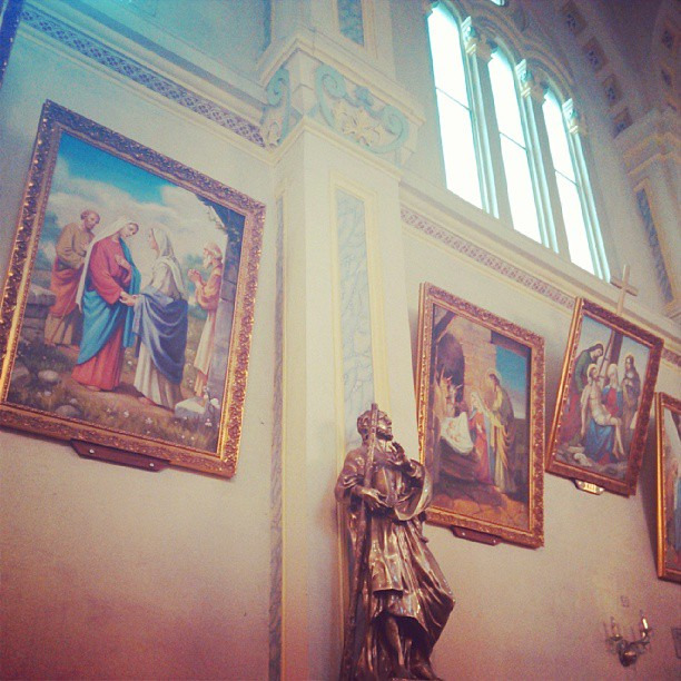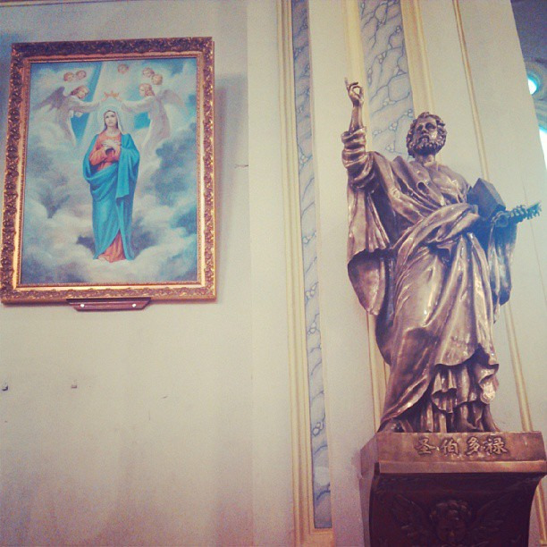 本也不是教徒,只是喜欢教堂里那种神圣庄严的西方色彩,尤其喜欢彩色的玛瑙玻璃,好美丽
