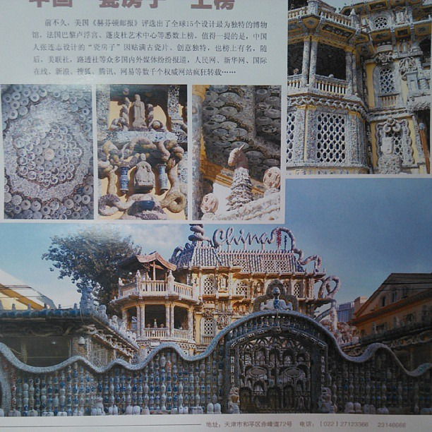 说白了,瓷房子其实就是南开大学的孩子买了棟小别墅,搞了一批碎瓷瓶子,搞碎了贴在房子上,又弄了批旧家具,没地儿放全撂屋里了,然后堆着参观顺便收收票赚点钱好了~~