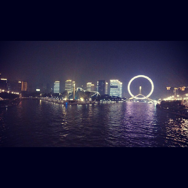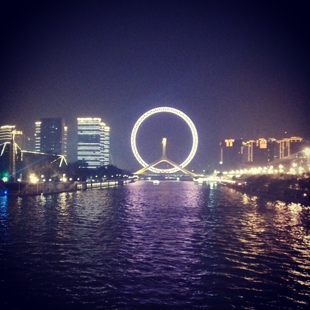 走到金钢桥就是观赏天津之眼三叉口的最佳位置了,有好多长筒相机和自拍在这里咵嚓咵嚓的,我当然也要来几张,太美了