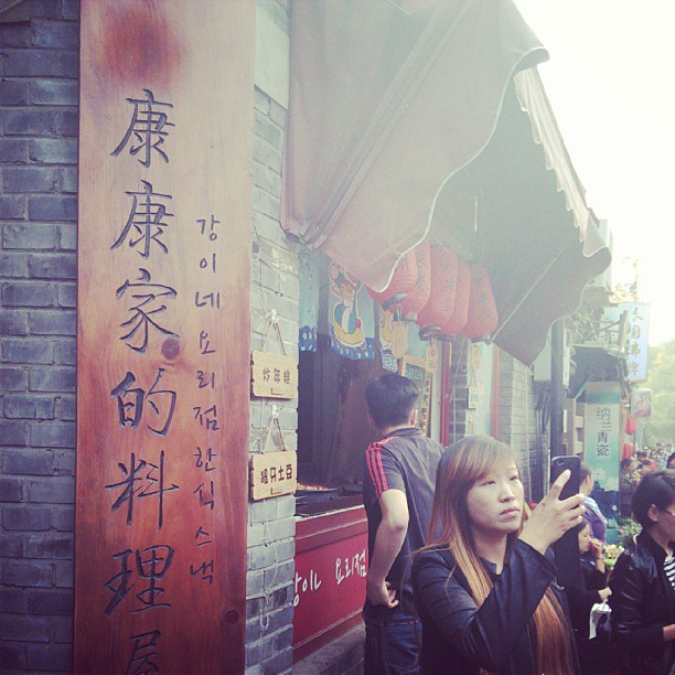 中饭就在食品街门口那家清真小店里吃的粥和包子,价格不贵,就是碗筷什么的都不怎么干净,人流大所以忙的服务也都跟不上,桌子上堆了好多用过的碗筷也没人收
