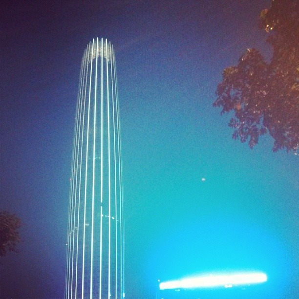 沿着大沽北路白天就看到了高高耸立的非常现代化的一个子弹型的建筑,这就是天津环球金融中心了,夜晚条形的灯光亮起来更显宏伟,屹立在大沽桥的南端,见证着天津现代化的突飞猛进