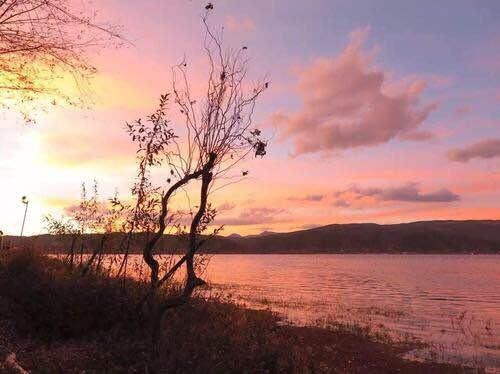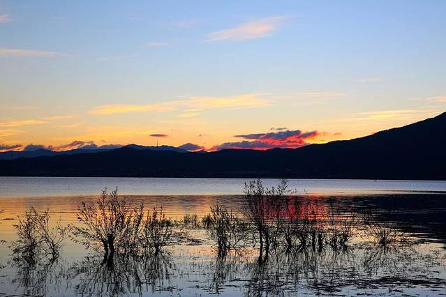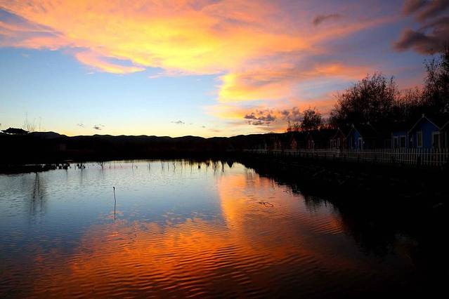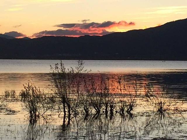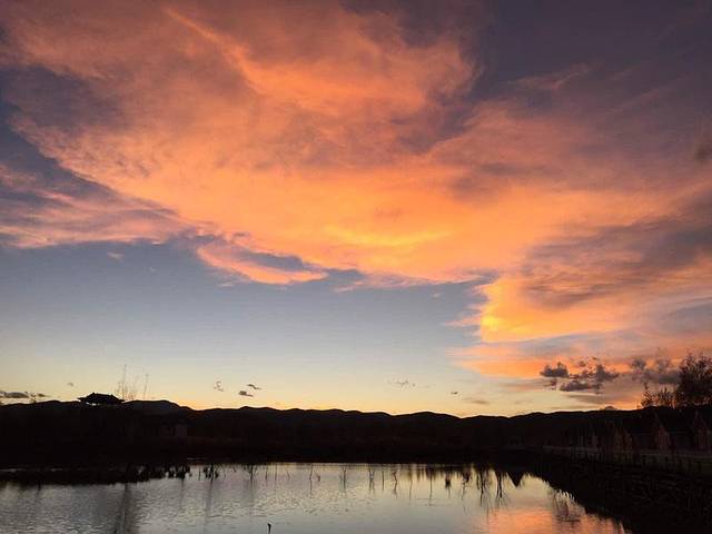 傍晚时分我们进到拉市海湿地公园观赏日落,甚是壮观,半边天都是红彤彤的!